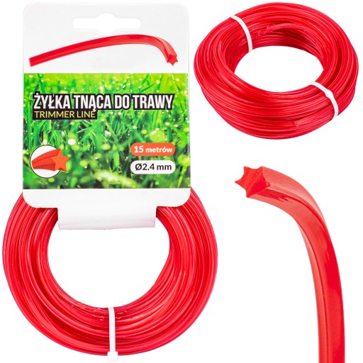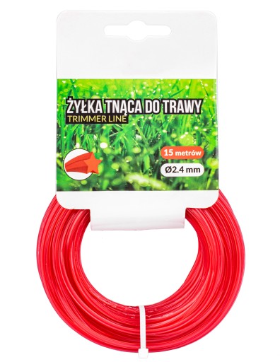 Wytrzymała żyłka tnąca pięciokątna ,,gwiazdka" 2,4 mm do kos, podkaszarek, wykaszarek sprawdza się podczas prac w ogrodzie, przy pielęgnacji trawników oraz wykaszaniu chwastów.