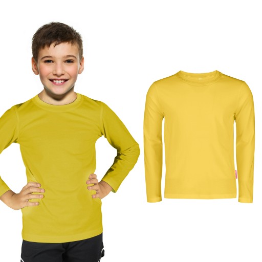 BLUZKA DZIECIĘCA BAWEŁNIANA GŁADKA Z DŁUGIM RĘKAWEM ŻÓŁTA 128 CM