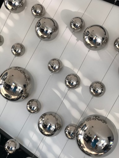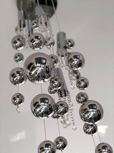 Ekskluzywna girlanda ze stalowych kul na stalowej lince posiada haczyk z dwóch stron.