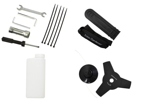 Multifunkcyjna kosa John Gardener została wyposażona w wydajny dwu-suwowy silnik o pojemność 51,7cm3 i mocy 3KM.