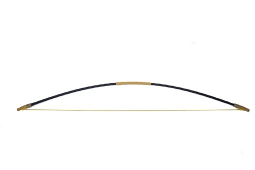 Łuk wykonany z kompozytu, zdobiony materiałem skóropodobnym i naturalnym sznurkiem.