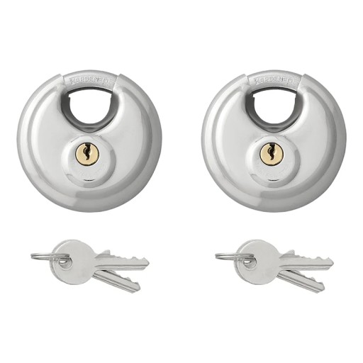 Dziś do zaoferowania mamy komplet dwóch nowych kłódek okrągłych o średnicy 70 mm