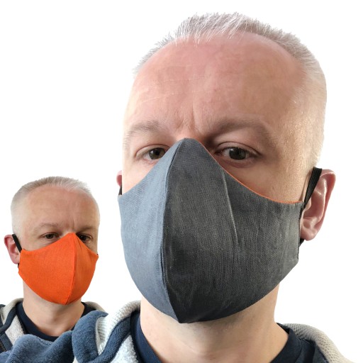 Maskę można nosić na szarej i pomarańczowej stronie. Należy pamietać o zachowaniu zasad higieny i przed każdą zmianą strony maskę zdezynfekować według wytycznych podanych poniżej.