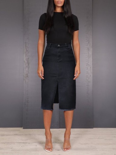 CZARNA dłuższa spódnica DENIM JEANSOWA