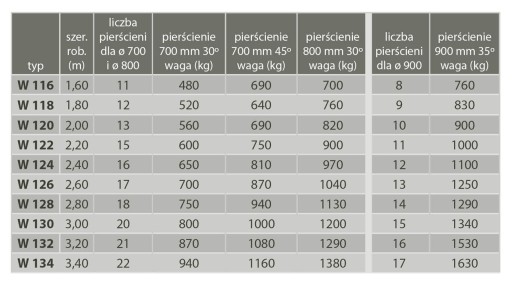 - Pierścienie Campbella średnica 700mm, kąt ostrza 30 stopni.