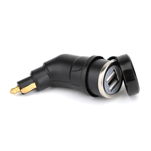 Przejściówka gniazda zapalniczki z dwoma portami USB szybkiego ładowania o napięciu 5V 3,3A. Zestaw umożliwia jednoczesne korzystanie z obu gniazd, czyli ładowanie np. nawigacji i telefonu w tym samym czasie. Gniazda posiadają gumową osłonę chroniącą przed wodą i kurzem. Obudowa wykonana jest z metalu dzięki czemu produkt jest wytrzymały i solidny. Najczęściej stosowane w BMW i samochodach ciężarowych TIR.