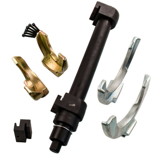 Profesjonalny zestaw do ściągania sprężyn w samochodach osobowych i dostawczych. Ceniony za swą uniwersalność. Zaletą tego typu ściągaczy jest wysoka siła ściskania rozłożona na dużą powierzchnię, unikamy tym samym uszkodzeń sprężyn i niebezpieczeństwa zerwania ściągacza .Ściagacza można używać bez wyciągania kolumny.