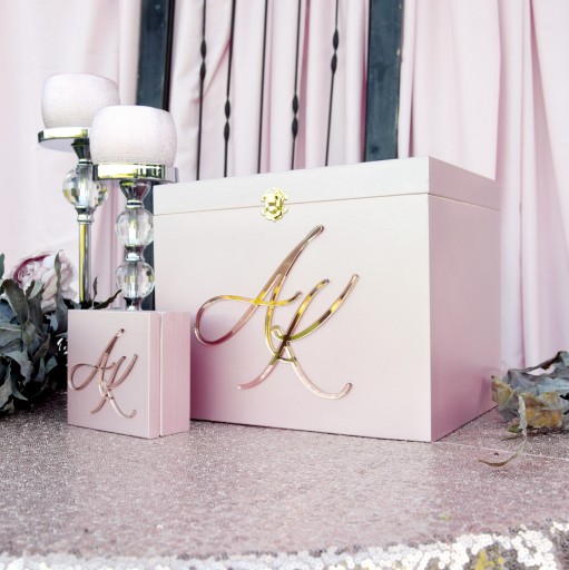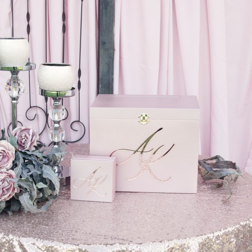 БОЛЬШАЯ Коробка для КОНВЕРТОВ + ОБРУЧАЛЬНЫЕ КОЛЬЦА розовое золото