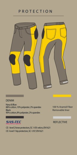 Denim to tkanina tak kultowa, że nikomu nie trzeba jej przedstawiać. Noszona przez ludzi w każdym wieku, na całym świecie. Nic więc dziwnego, że posłużyła do stworzenia spodni motocyklowych – daje w końcu pewność, że będą wygodne i bezpieczne. Tak jak materiał, z którego zostały wykonane.