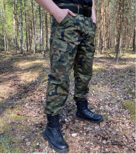 Wykonane są w Polsce przez polskiego producenta-kamuflaż Pantera. Charakteryzują się bardzo wysoką jakością wykonania i wytrzymałą tkaniną wykonaną ze splotu poliestru 50% i bawełny 50%. Połączenie tych dwóch włókien daje w efekcie spodnie o dużej wytrzymałości na przetarcia i rozdarcia.Nogawki lużne o klasycznym prostym kroju są zakończone podwinięciem .W tunelu kończącym każdą nogawkę umieszczono taśmę ściągającą służącą do ściskania nogi w bucie.Rozporek spodni zapinany jest na guziki. Szlufki przystosowane do szerokich pasów. Idealnie nadają się dla Wojska, Harcerstwa, Agencji Ochrony, Survivalu, jak również codziennej pracy.