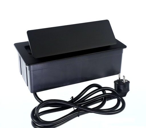 Gniazdo chowane w blat umożliwia podłączenie 3 urządzeń do jednej listwy zasilającej. Przeznaczone do montażu wewnątrz pomieszczeń w biurkach, blatach itp..
