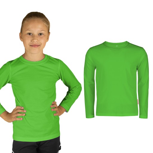 BLUZKA DZIECIĘCA BAWEŁNIANA GŁADKA Z DŁUGIM RĘKAWEM ZIELONA 122 CM
