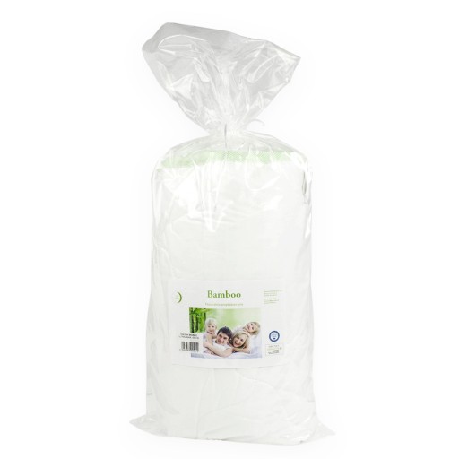 Wypełnienie kołderki to włóknina bambusowa, cechuje się ona wysoką izolacją cieplną, równomiernie rozgrzewają ciało oraz doskonale ODPROWADZAJĄ WILGOĆ PRZEPUSZCZAJĄC POWIETRZE.