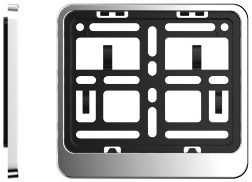 Ramka jednoczęściowa wykonana z bardzo wytrzymałego ABS. Uniwersalna, łatwa w montażu, trwała, posiada system otworów umożliwiających jej montaż do każdego motoru bez konieczności nawiercania dodatkowych otworów w ramce. System sprężyn doskonale zabezpiecza ramkę przed drganiami na motocyklu jak również tablicę rejestracyjną przed drganiami wewnątrz ramki.