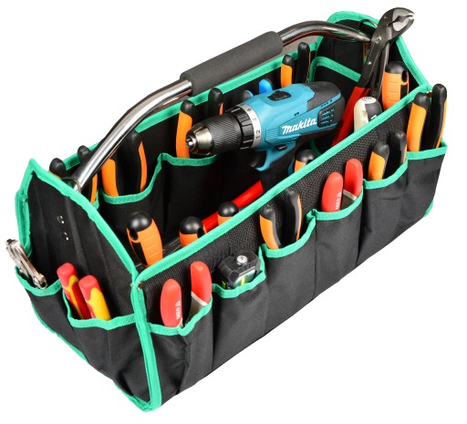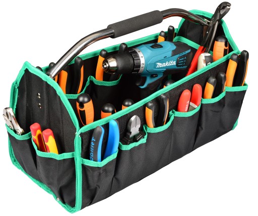 Torba jest bardzo stabilna i wytrzymała. Wykonana z mocnej i odpornej tkaniny poliestrowej. Miękki, wygodny i regulowany pas naramienny umożliwia bezproblemowy transport narządzi. Dodatkowo torba posiada wzmocnione dno, przez co jej konstrukcja jest jeszcze bardziej stabilna. Torba posiada nowoczesny design oraz wzmocniona rączkę z antypoślizgowym uchwytem.