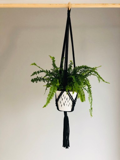 Kwietnik wiszący makrama. Wykonany ręcznie ze sznurka bawełnianego 5mm w kolorze kość słoniowa lub czarnym.