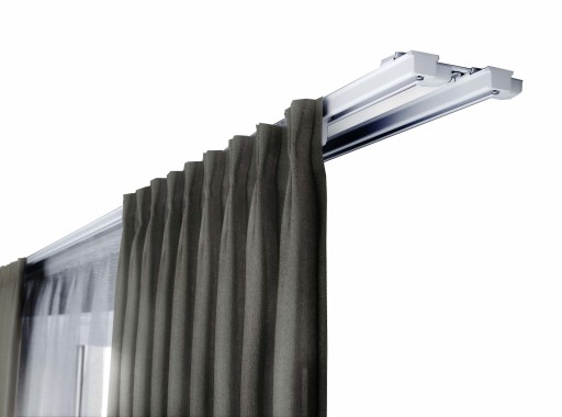 Profesjonalny i funkcjonalny system do zawieszania średnio-ciężkich tkanin. Montaż szyny na suficie jest szybki i prosty (wkręcane kołki mocujące w zestawie).Wytrzymałe wciskane suwaki - odporne na promieniowanie UV. Szyny można łączyć ze sobą w dłuższe odcinki za pomocą łączników ZS .