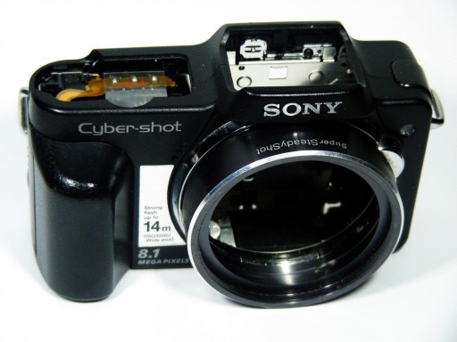 Kompletna obudowa wraz z zawartością aparatu cyfrowego Sony H3. Stan bdb, ślady użytkowania minimalne
