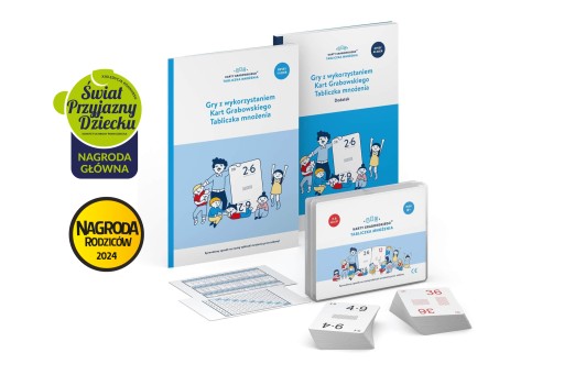 Karty Grabowskiego Tabliczka mnożenia to komplet unikalnych kart i pasjonujących gier, które uczą dzieci tabliczki mnożenia przez zabawę. Od blisko 25 lat doskonale sprawdzają się zarówno w domu, jak i w szkole. Karty Grabowskiego zdobyły uznanie wśród rodziców, nauczycieli i instytucji edukacyjnych. W wariancie rozszerzonym oprócz książki z opisem 11 gier, otrzymujesz drugą książkę z opisem dodatkowych 45 gier.
