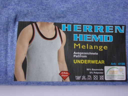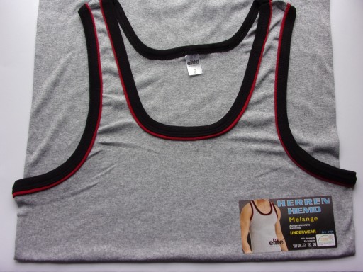 Podkoszulek męski klasyczny szary oraz niebieski, wykończony lamówką bawełnianą na ramiączkach, z bardzo dobrej jakości materiału, przyjemnego w dotyku, rozciągliwego. Podkoszulek przewiewny i wygodny. Niewątpliwą zaletą jest to, że podkoszulek nie traci swojego fasonu ani koloru po wielu praniach. Doskonale dopasowuje się do ciała. Wykonany z wysokogatunkowej czystej bawełny, dzięki czemu przepuszcza powietrze a jednocześnie jest elastyczny i wytrzymały.