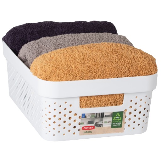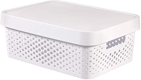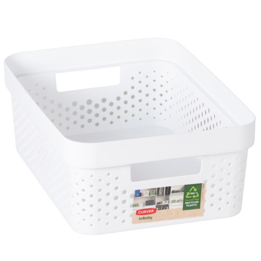 Seria pojemników Infinity to pewność porządku i to w dobrym stylu. Przechowamy w nim zapasy żywności, ubrania, książki, dokumenty. Słowem: absolutnie wszystko! Prezentowany pojemnik posiada przykrywkę o gładkiej powierzchni oraz ażurową strukturę, dzięki której możliwa jest ciągła cyrkulacja powietrza. Projektanci nadali pojemnikowi prosty, ale niebanalny kształt. Można je ustawiać jeden na drugim w dowolnej kombinacji. Idealnie komponuje się ze skandynawskim aranżem wnętrz.