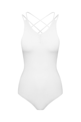 Wygodne body z krzyżującymi się ramiączkami na plecach, które nadają efektownego wyglądu. Kostium idealnie nadaje się do zajęć z baletu, gimnastyki oraz jogi.