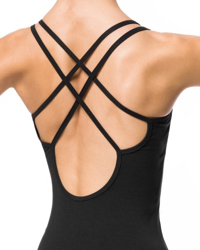 Wygodne body z krzyżującymi się ramiączkami na plecach, które nadają efektownego wyglądu. Kostium idealnie nadaje się do zajęć z baletu, gimnastyki oraz jogi.
