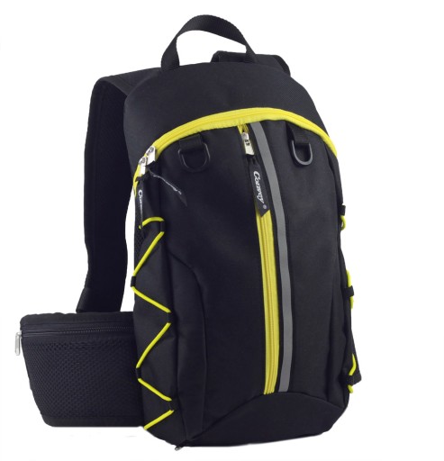 Plecak został wyposażony w regulowany pas piersiowy oraz biodrowy spinane na zatrzaski, profilowane szelki oraz delikatnie usztywnione plecy.