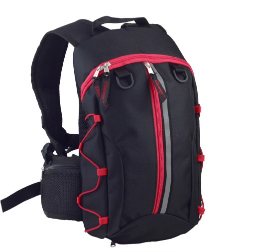 Plecak został wyposażony w regulowany pas piersiowy oraz biodrowy spinane na zatrzaski, profilowane szelki oraz delikatnie usztywnione plecy.