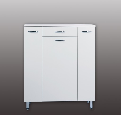 Nowoczesna i praktyczna szafka łazienkowa wyposażona w kosz na bieliznę 30 cm, funkcjonalną szufladę oraz otwierane drzwiczki 2x20 cm