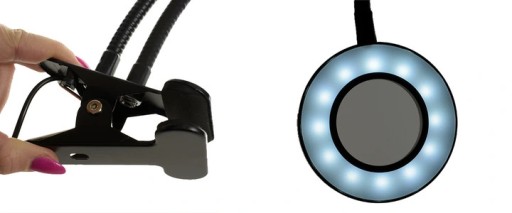 PRZY ZASTOSOWANIU LAMPY LED KAŻDY DETAL TWARZY JEST PERFEKCYJNIE DOŚWIETLONY! Używaj jako dodatkowe doświetlenie do kamerek on-line podczas wideokonferencji, na skype, lekcji on-line, zdalnej pracy. Szczęki uchwytu świetnie sprawdzą się jako holder do kamery internetowej.