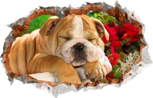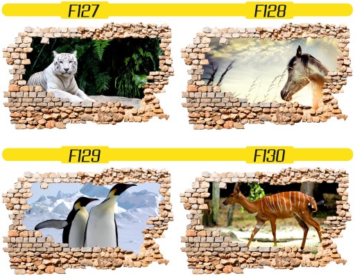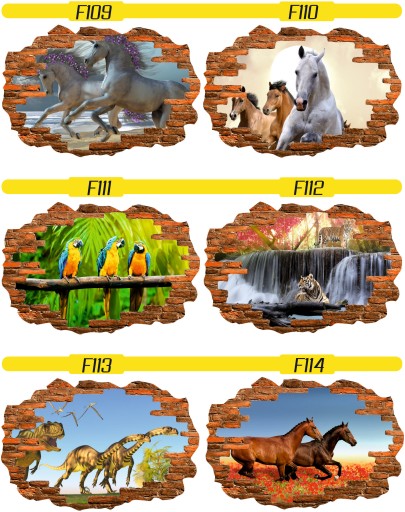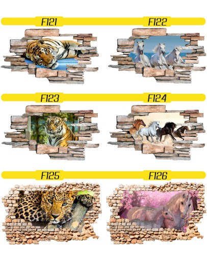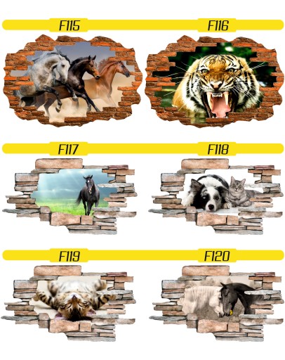 Наклейка с 3D эффектом дырка в стене кошки собаки лошади