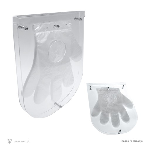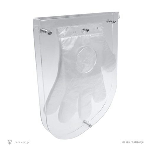 Podajnik / Dozownik / Dyspenser do rękawiczek foliowych jednorazowych wykonany z pleksi do wygodnego i estetycznego wyjmowania. Możliwość montażu do ściany.