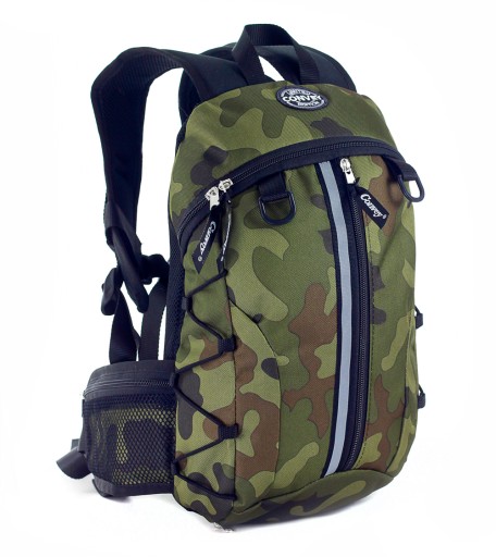 Plecak został wyposażony w regulowany pas piersiowy oraz biodrowy spinane na zatrzaski, profilowane szelki oraz delikatnie usztywnione plecy.