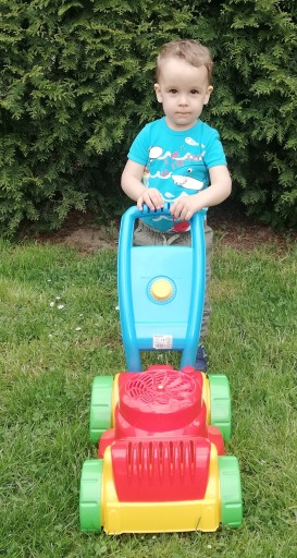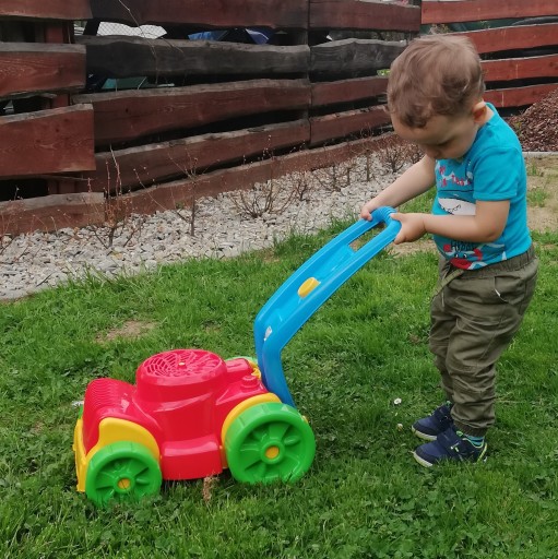- Kosiarka posiada rączkę, dzięki której można uruchomić imitację silnika