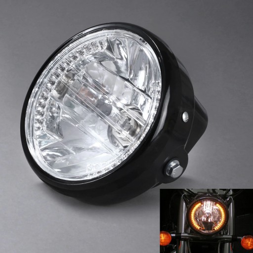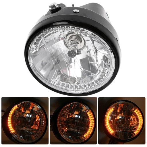 Nowoczesny wzór lampy zapewni każdemu motocyklowi świeży i atrakcyjny wygląd. Jest to produkt skierowany dla osób chcących osiągnąć unikatowy wygląd swoich motocykli. W lampie znajduję się żarówka H4 35W ze światłami krótkimi i drogowymi plus kierunkowskazy LED.