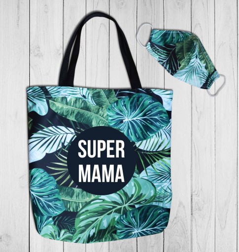 Torba z nadrukiem to świetny oraz trafiony prezent dla każdej mamy, maseczka z identycznym nadrukiem będzie się świetnie komponowała na zakupach razem z torbą.