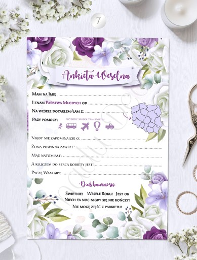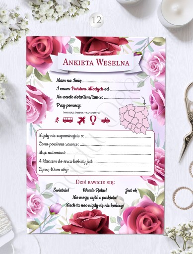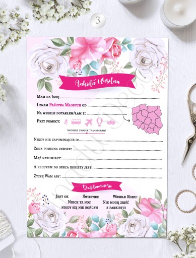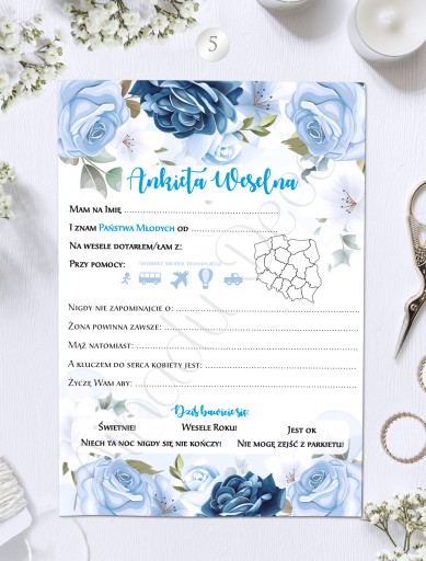 Ankieta weselna 1 kpl = 4szt A5.