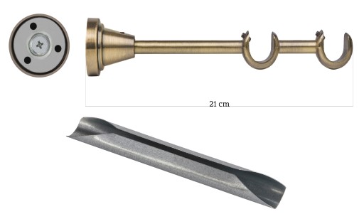 Szerokość tego karnisza to 480cm, jest to rozmiar połączonych dwóch rurek. Zakończenia ozdobne przedłużają karnisz w zależności od wybranego modelu zakończenia. Stalowy łącznik wewnętrzny solidnie scala rurki. Wspornik idealnie maskuje łączenie rurek.