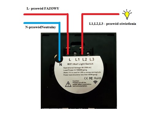 Włącznik wymaga kabla neutralnego, prosimy przed zakupem o sprawdzenie czy posiadacie Państwo kabel N w swojej instalacji.