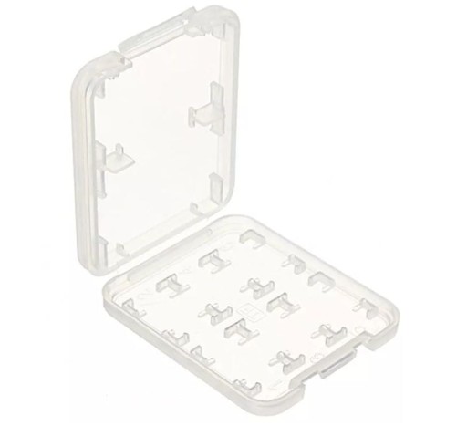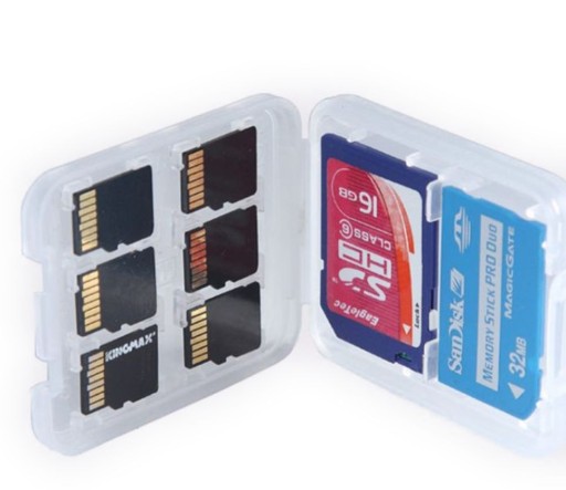 pudełko box pojemnik na karty pamięci, chroni przed uszkodzeniami, pomaga zachować porządek z kartami.