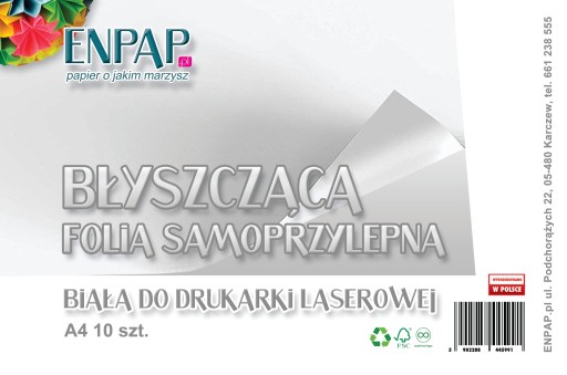 FOLIA SAMOPRZYLEPNA DO DRUKAREK LASEROWYCH - BIAŁA - A4