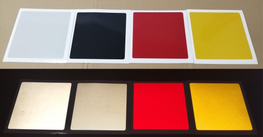- wycięte arkusze odblaskowe w wariantach kolorystycznych: biały, czarny, żółty i czerwony