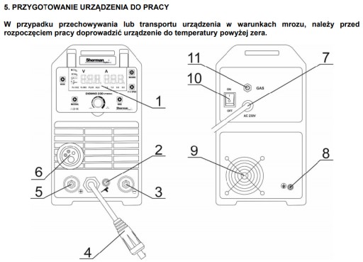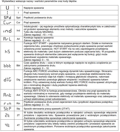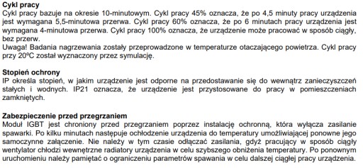 - Instrukcja obsługi w języku polskim całej spawarki oraz wszystkich możliwych funkcji