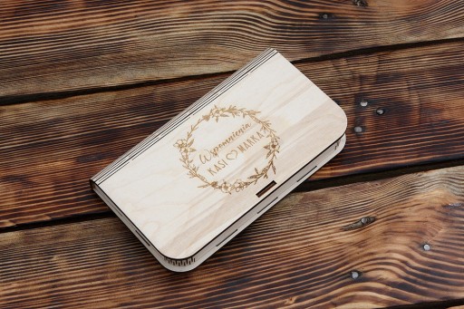 Wieczko pudełka jest trwale wygrawerowane techniką laserową z dbałością o najmniejsze detale. Można je dowolnie spersonalizować według Państwa życzenia.