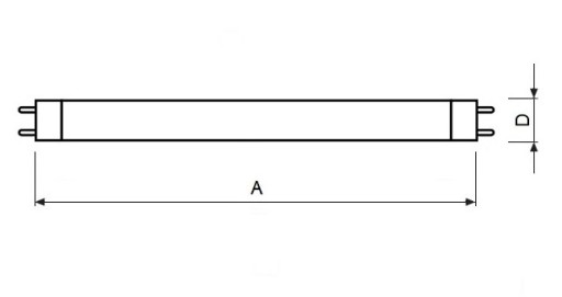 - Wymiary: długość (bez pinów) ok. 438 mm, średnica rurki szklanej 26 mm