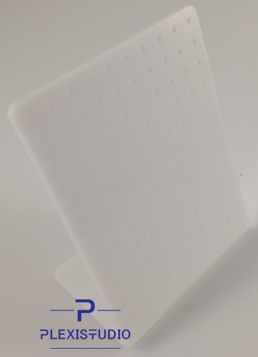 Bardzo elegancki stojak na kolczyki z plexi. W stojaku wycięte są otworki w celu wygodnego wieszania różnych modeli kolczyków.