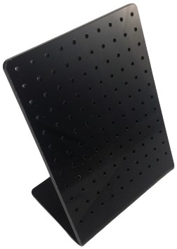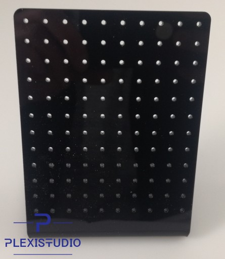 Bardzo elegancki stojak na kolczyki z plexi. W stojaku wycięte są otworki w celu wygodnego wieszania różnych modeli kolczyków.