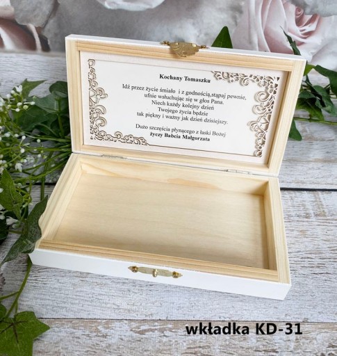 na wieku piękna kolorowa grafika komunijna nanoszona bezpośrednio na pudełko