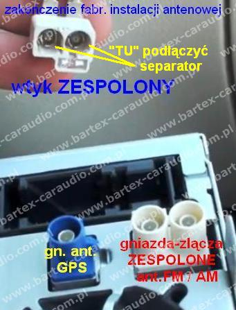 Separator antenowy NIEZBĘDNY (!!!) dla prawidłowego działania wzmacniacza antenowego wbudowanego w podstawę fabrycznej anteny różnych producentów samochodów instalowanej na dachu lub "wtopionej" w szybę w :